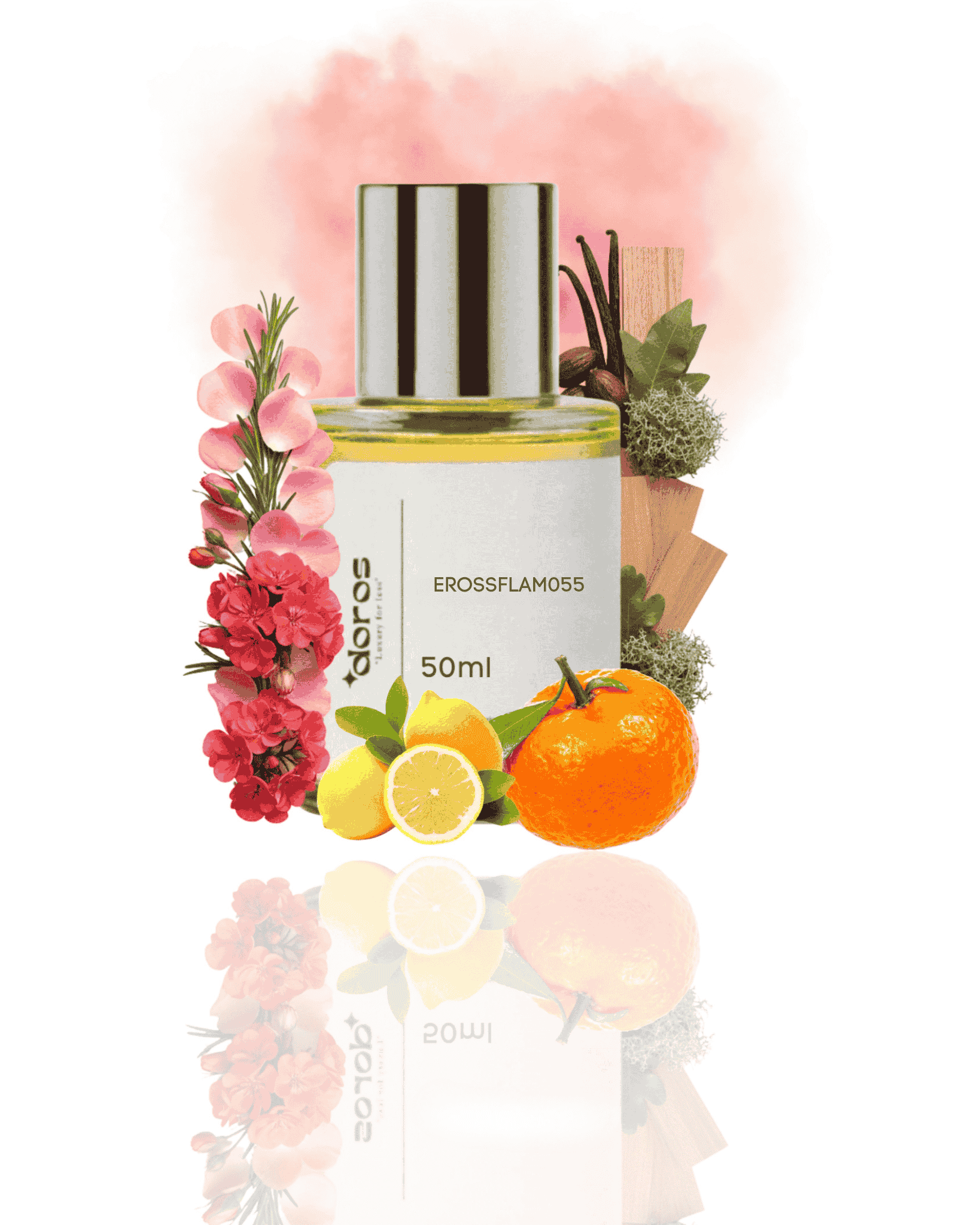 The Doros Eross Flam 055 muadil koku, citrus, baharat ve odunsu notaların birleşimiyle güçlü, tutkulu ve kalıcı bir deneyim sunar. Doros kalitesiyle keşfedin.