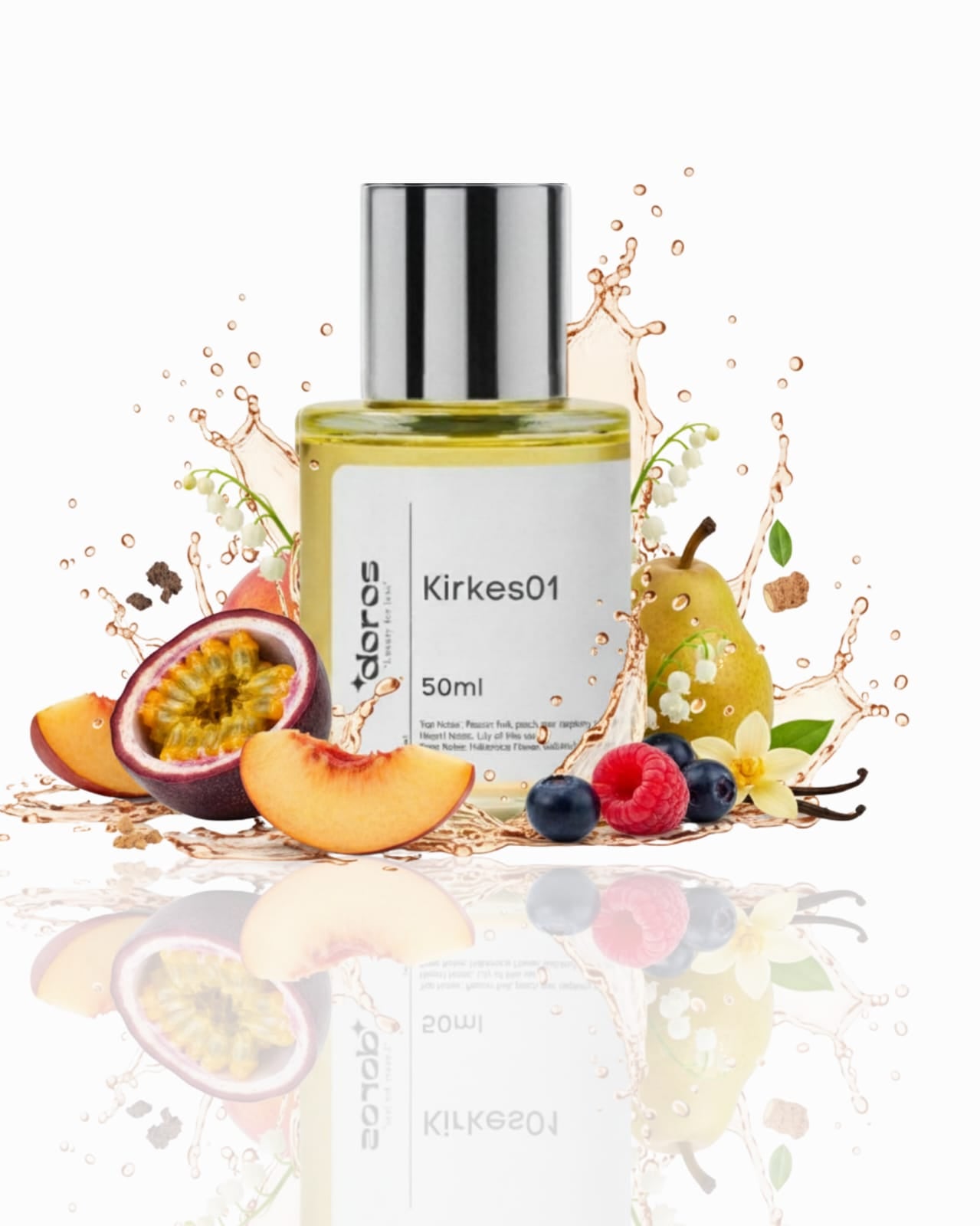 The Doros Kirkay 027 muadil koku, çarkıfelek meyvesi ve şeftali açılışı, zambak gövdesi, misk ve vanilya temeliyle uzun ömürlü, ferah ve sofistike bir deneyim sunar.
