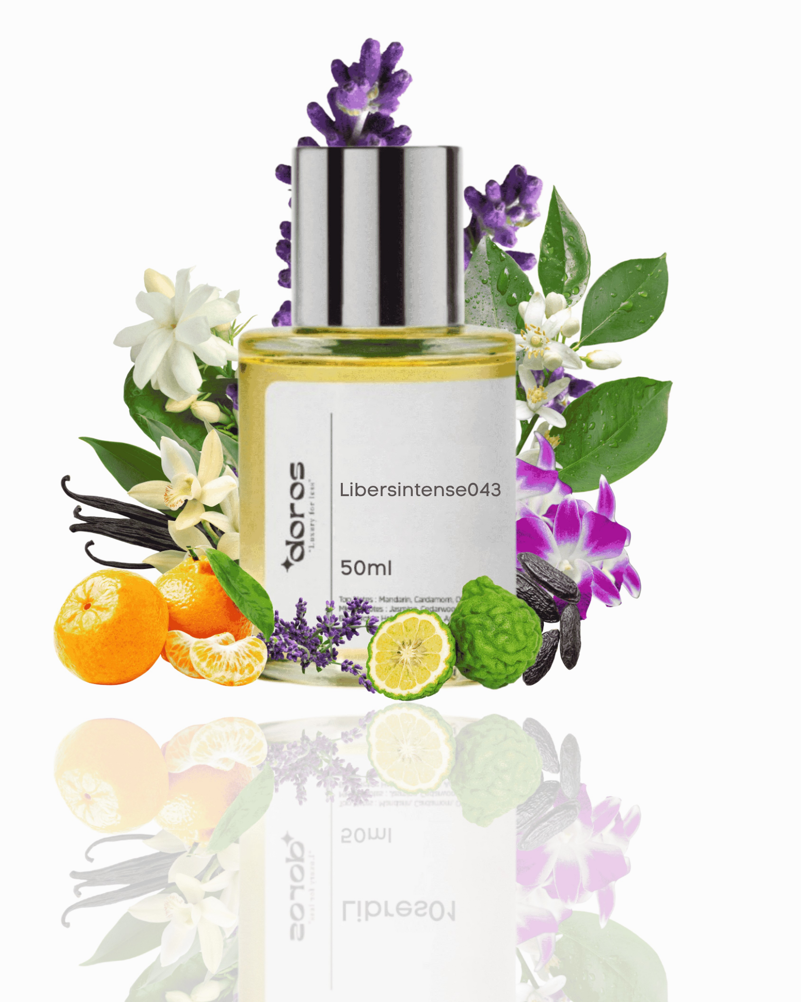 The Doros Libers Intense 043 muadil koku, lavanta ve bergamotla ferah açılır, yasemin ve portakal çiçeğiyle zarifleşir, vanilya ve amberle kalıcı, sofistike bir imza bırakır.