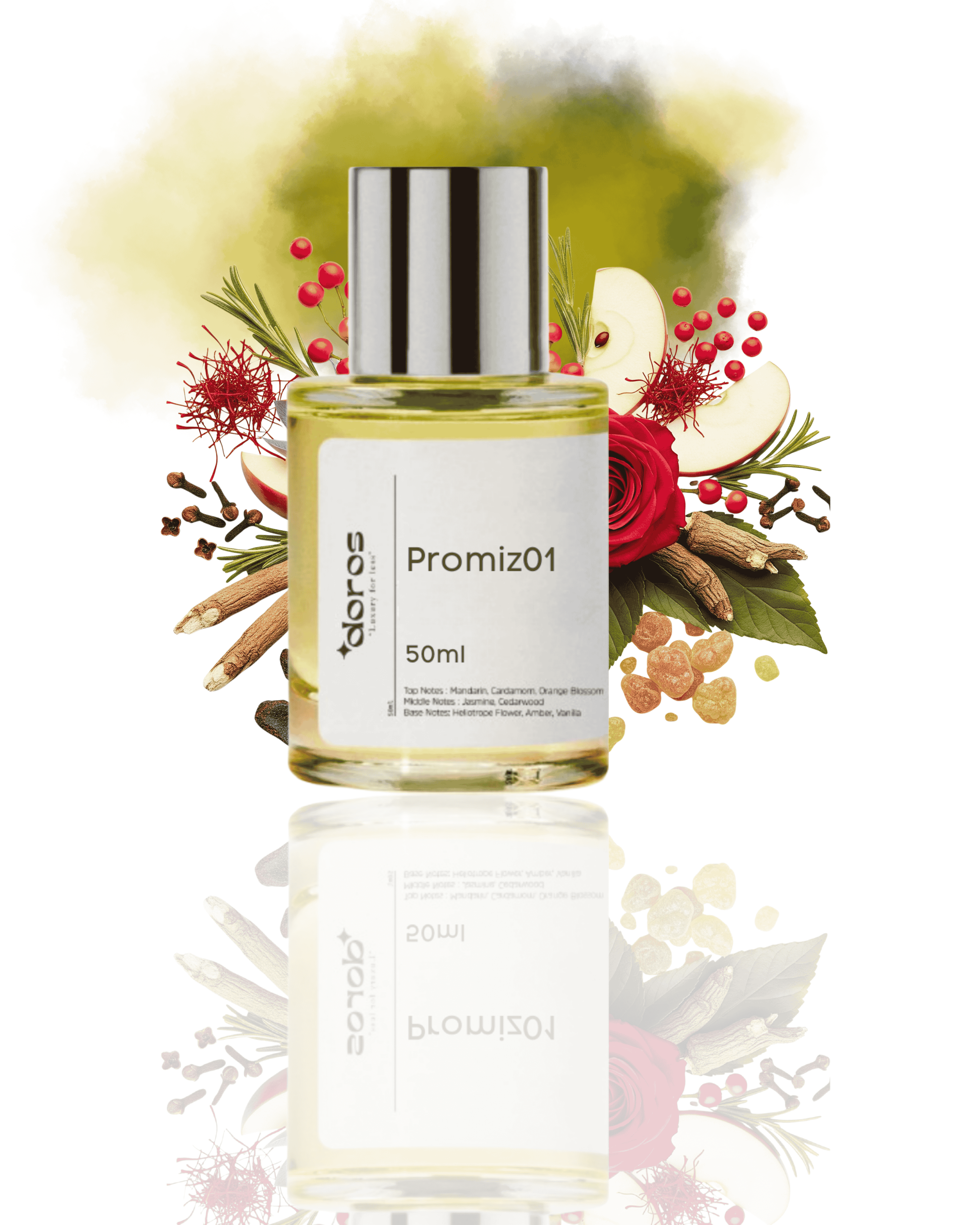 The Doros Promiz 084 Muadil Koku, elma ve baharatlarla açılır, gül ve yaseminle derinleşir, oud ve amberle kalıcı bir kapanış yapar. Dinlendirilmiş formülüyle ilk andan itibaren hazır olan bu muadil koku, gizemli ve sofistike bir deneyim sunar.