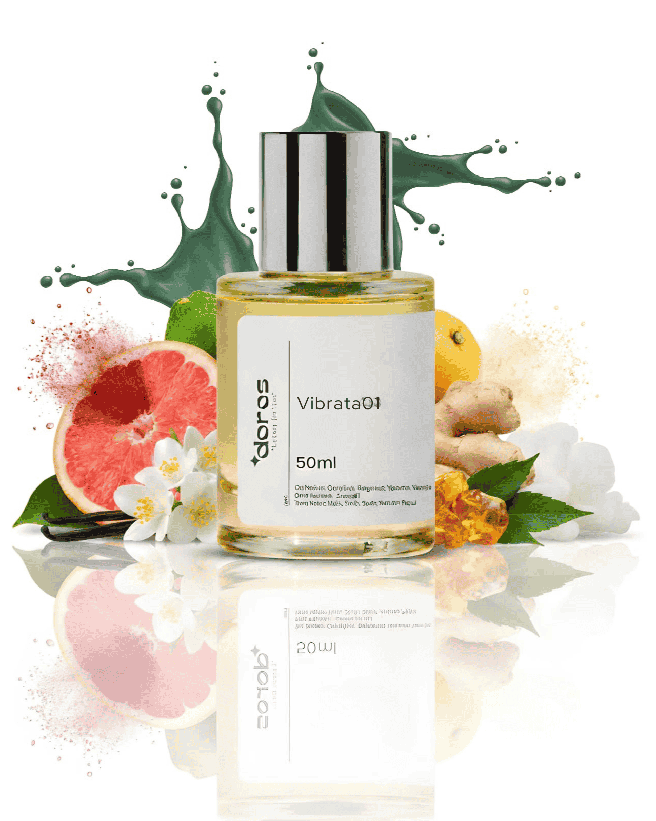 The Doros Vibrata 019 muadil koku, greyfurt ve bergamotla açılır, zencefil ve pudramsı notalarla orta katmana ulaşır, sedir ve amber ile kalıcı bir temel bırakır.